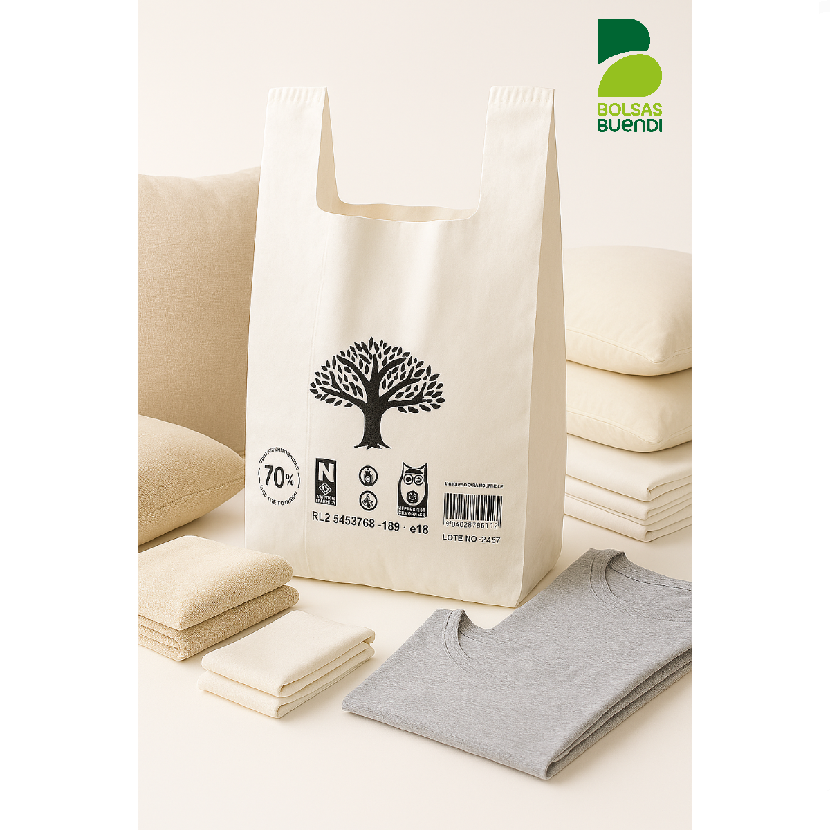 Las bolsas asa camiseta anónimas 60×70 son el formato de mayor tamaño dentro de la gama estándar, diseñadas para comercios que necesitan máxima capacidad para transportar productos voluminosos.